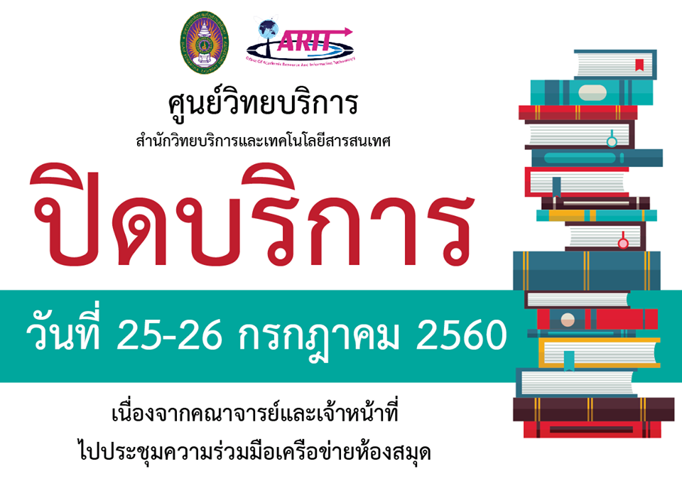 > ปิดบริการ วันที่ 25 - 26 กรกฎาคม 2560