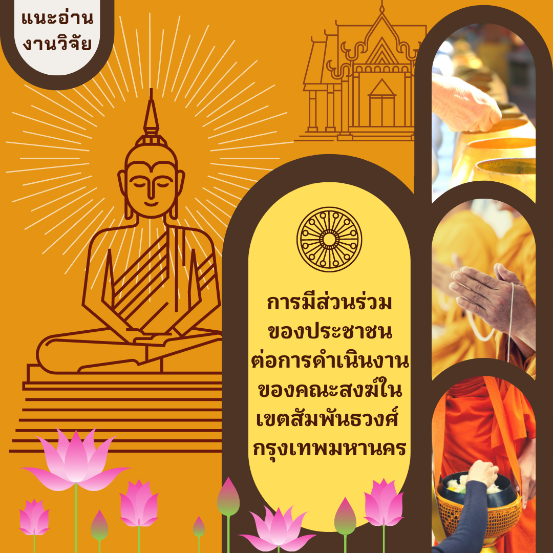 The research of people's participation in clerical task of temples that studied the level of public participation and to study the relationship between general information and people's participation in clerical task of temples in Sumphuntawong district, Bangkok metropolitan administration. By studying the people who came to practice dharma at Wat Khet Samphanthawong, it was found that the level of people's participation in the operation of the monks in all 4 areas. Those are consisted of education, welfare propagation, public utilities, and public welfare. It was at a moderate level in all aspects. Overall, the people's participation in the operation of the monks was at a moderate level. The factor that related to the participation of the people in the operation of the monks are: education level, occupation, according to the assumptions. The unrelated factors were gender, age, marital status, and income, which did not meet the assumptions.