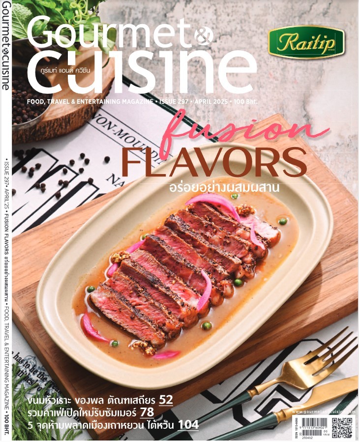 Presenting content about Cover Story Grains, a treasure trove for health lovers RecipesFusion Flavors with Raitip A delicious fusion dish Picanha Steak with Thai Natto & Black Pepper Sauce Grilled Chicken with Thai Sichuan Pepper Sauce Thai Twist Tonkatsu Curry Food & Drink Home Gourmet Le Pithiviers: A classic French dessert Drinks Let's Dive into Summer Delish DelightSimply Delightful Delicious desserts from Raitip Strawberry Basil Seed Pudding Simply Sweet Okinawa Purple Sweet Potato Cheese Tart Interview Special Guest Phet-Methas Chaimongkollanon Van-Wiwan Losiri From Kaew to Kaew Boutique, a new landmark of Kanchanaburi Food in Biz Rothip, the heart of Thai cuisine From the perspective of a Gen 3 heir, James-Jirayu Lertsakulcharoen Articles Food for Life Food for people with sensitive skin Be aware, prevent and take care of yourself Miscellaneous Nice to Know Pepper scolding-work, the difference is greater than Last But Not Least Hobbies, creating value and fulfilling life Eating Out & Traveling Eating Out G&C Recommendation Summer New Cafe • IG Café • Curvy Dining • Tavy's Home • Nordlys Coffee • Blue Fable House • Guilty Carnival Latin American-style bistro • The House Brasserie @One Bangkok New French restaurant in the GINGER FARM kitchen group SOMA (Lo-Ma) Modern Thai restaurant from Chef Charlie and Chef Noom-Weerawit Gourmet Spotlight Patt Bangkok, a restaurant packed with scars Book Chef Big-Atthasit Legendary Relive the menus of the past with delicious restaurants in front of the fence of Suankularb-Pheu Chang Foodie Picks 10 delicious restaurants that invite you to enjoy Take a tour by Rai Thip and Gourmet & Cuisine Places Eat well, sleep warmly at Baan Manee on the banks of the Chao Phraya River. Floral Court Hotel & Residence, a new hotel in an oriental style in Soi Sukhumvit 13. Wellness High Tea Spa, sip tea and get a relaxing massage at Baan Wannakawi. Travel 5 new corners of Taiwan in Taoyuan City, a secondary city that you must try to experience.