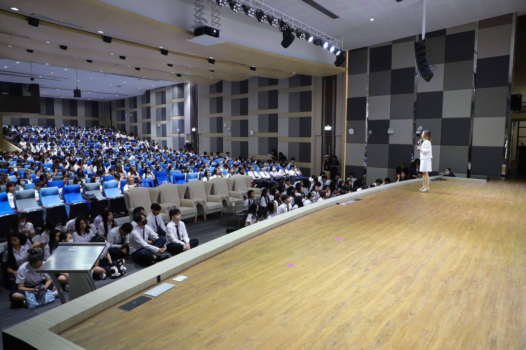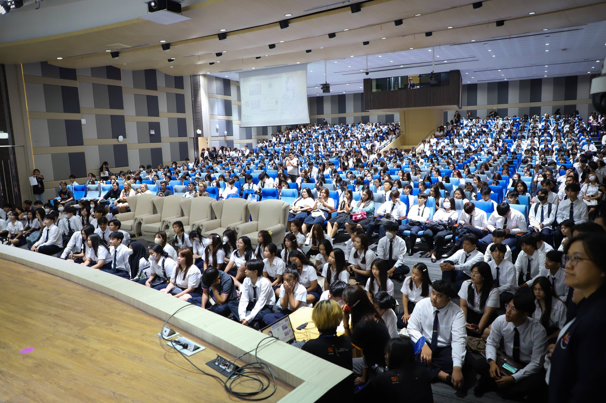 June 30, 2024. The Academic Resource Center and the Information Technology Center, The Office of Academic Resources and Information Technology headed by Ajarn Dr. Pimploi Tirastittam, Deputy Director of the Academic Resource Center, and staff introduced the library orientation and university information systems to the freshmen of the Faculty of Management Science at Sunanthanusorn Auditorium.