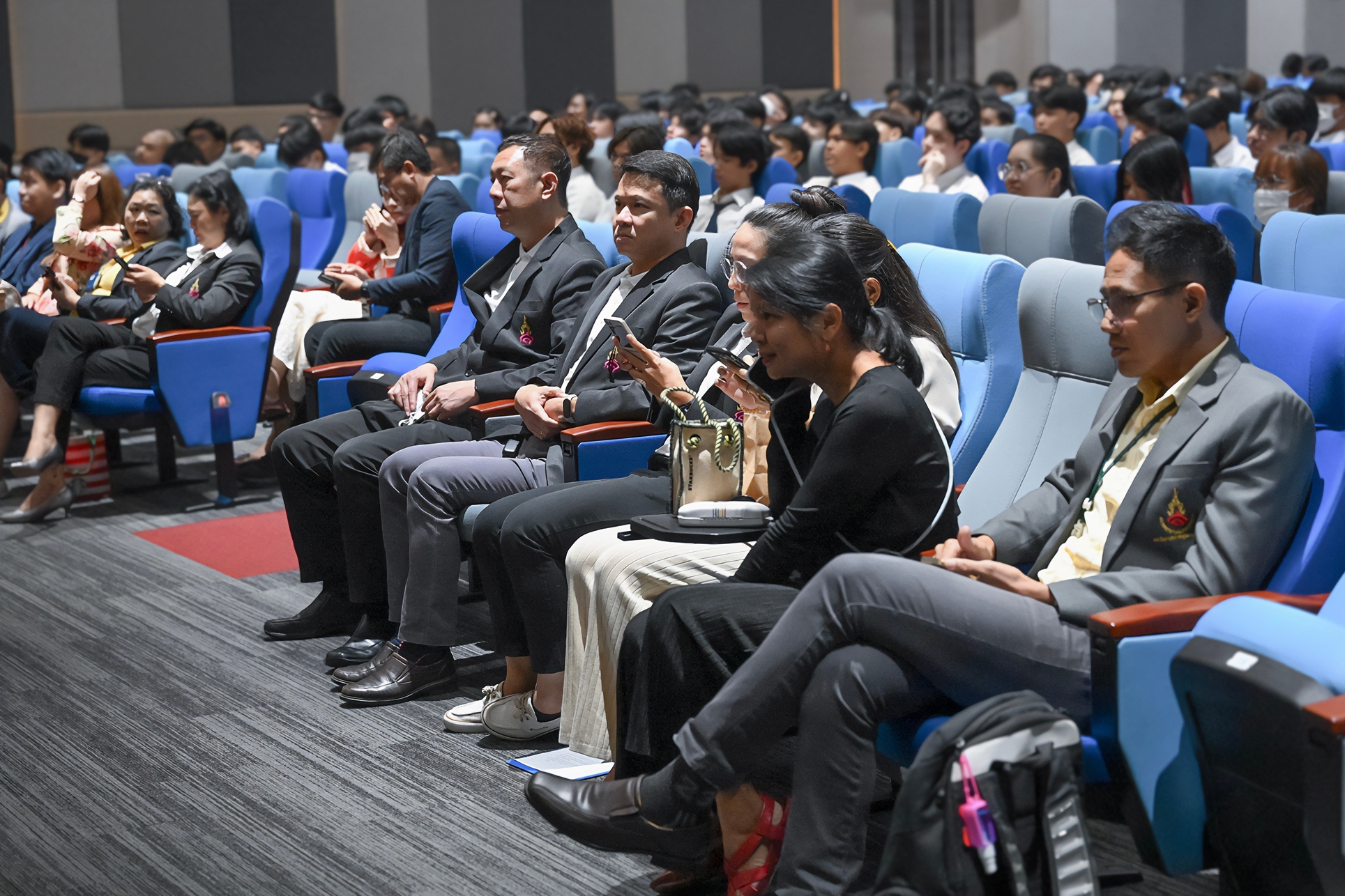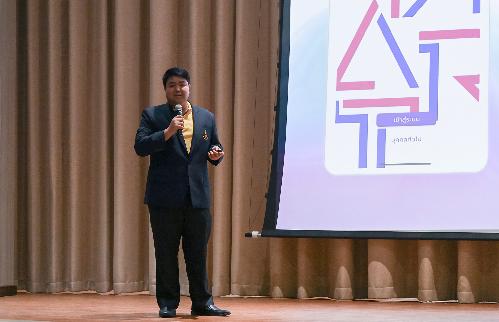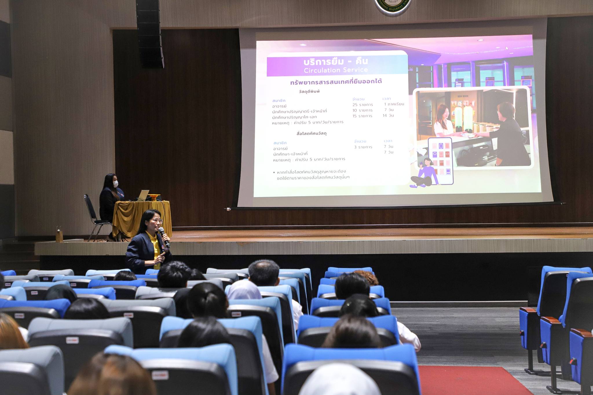 July 1, 2024. The Academic Resource Center and the Information Technology Center, The Office of Academic Resources and Information Technology headed by Associate Professor Dr. Sirilak Ketchaya, Director of the Office of Academic Resources and Information Technology, Ajarn Dr. Pimploi Tirastittam, Deputy Director of the Academic Resource Center, and staff introduced the library orientation and university information systems to the freshmen of the Faculty of Engineering and Industrial Technology, Faculty of Humanities and Social Sciences at Sunanthanusorn Auditorium.