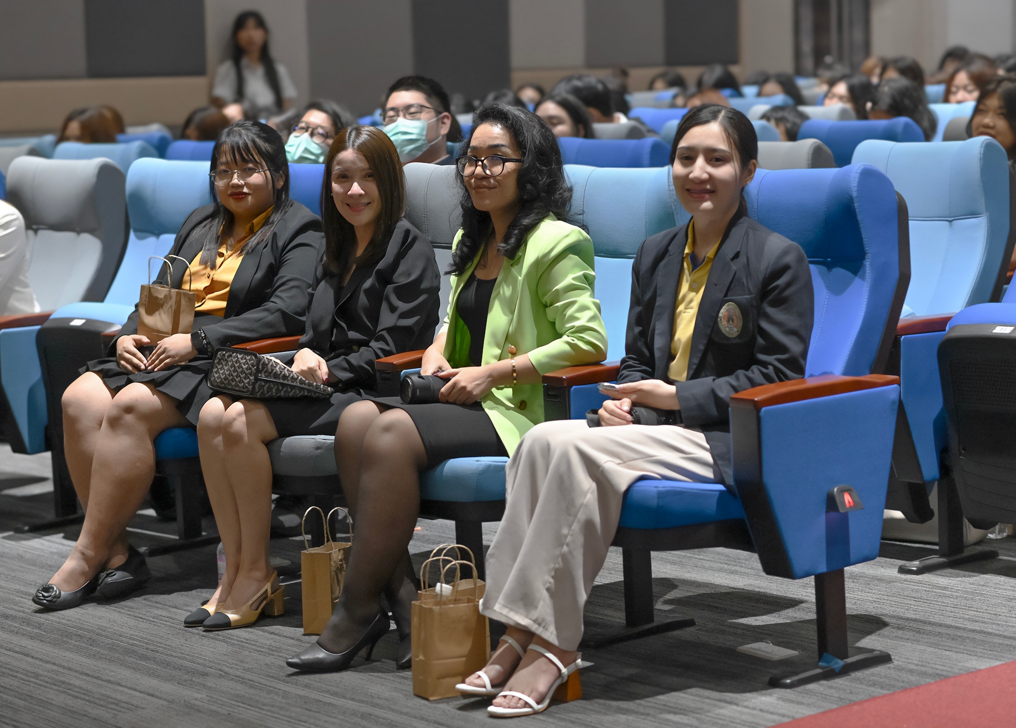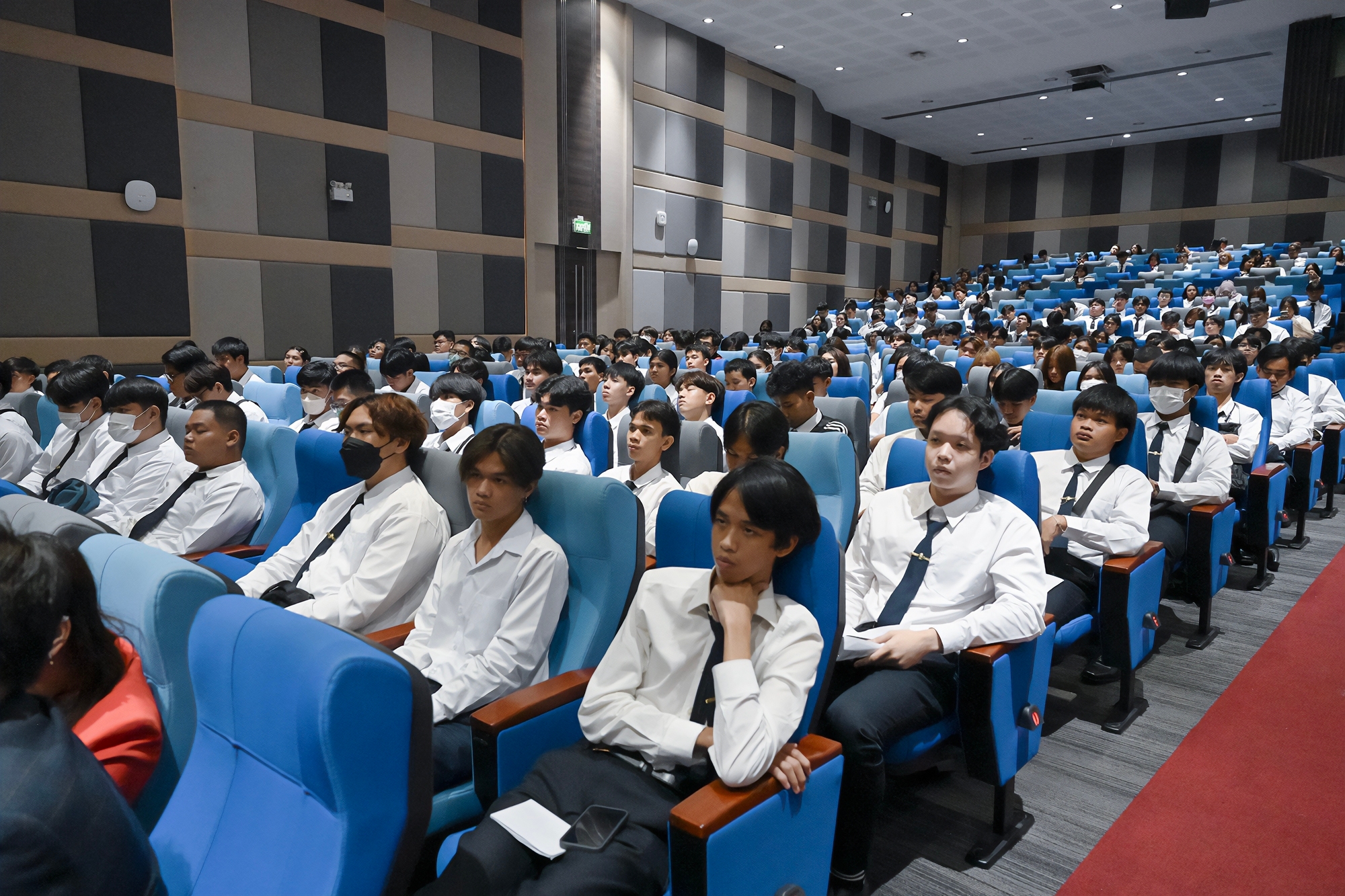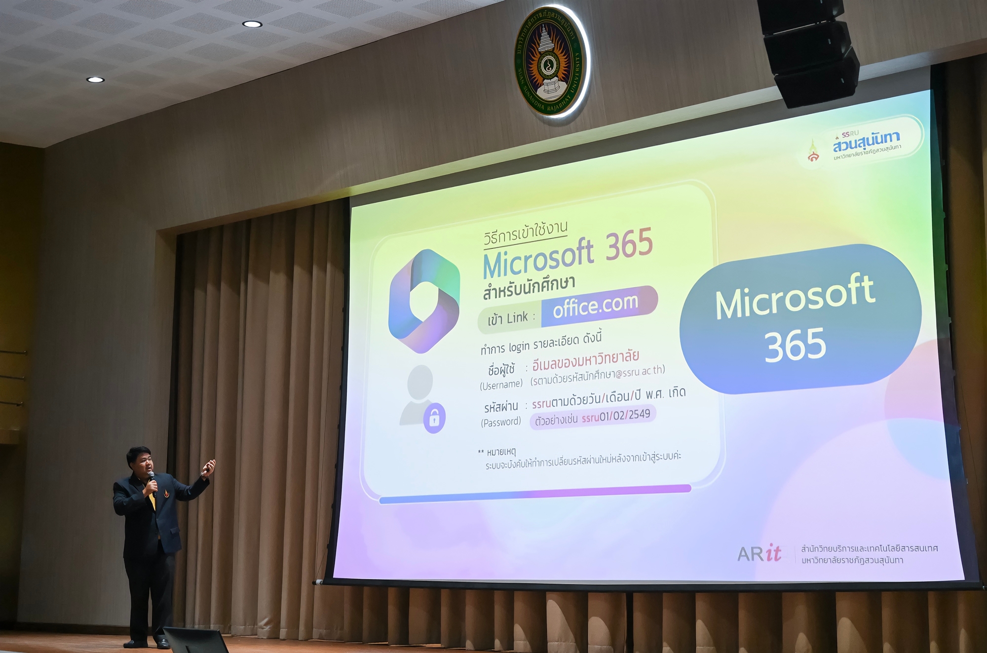 July 1, 2024. The Academic Resource Center and the Information Technology Center, The Office of Academic Resources and Information Technology headed by Associate Professor Dr. Sirilak Ketchaya, Director of the Office of Academic Resources and Information Technology, Ajarn Dr. Pimploi Tirastittam, Deputy Director of the Academic Resource Center, and staff introduced the library orientation and university information systems to the freshmen of the Faculty of Engineering and Industrial Technology, Faculty of Humanities and Social Sciences at Sunanthanusorn Auditorium.