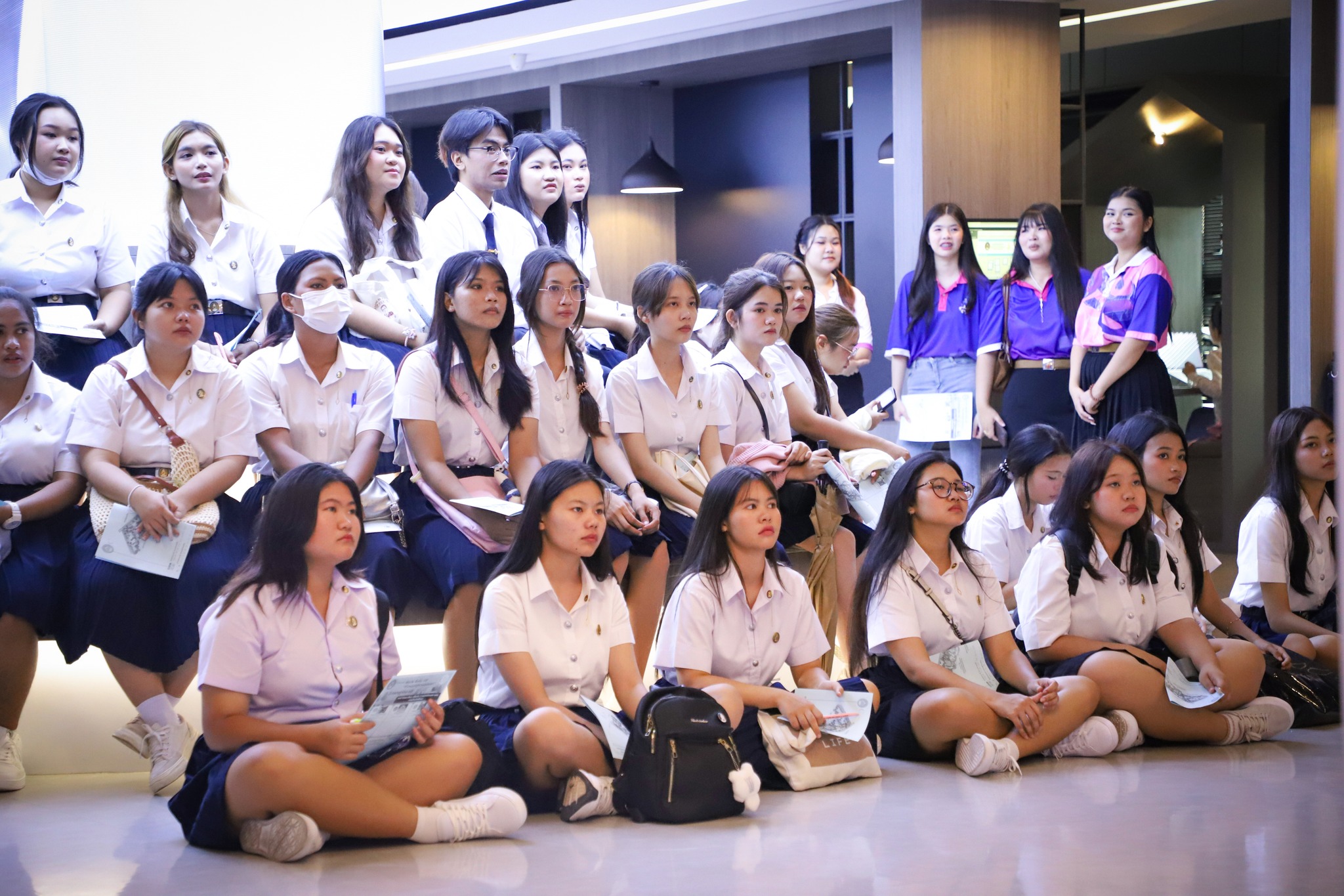 the Academic Resource Center of the Office of Academic Resources and Information Technology, led by Dr. Phimploi Tirastittam, Director, Lecturer Benya Whangmahaporn, Deputy Director of the Academic Resource Center, and staff, welcomed first-year students from the College of Hospitality Industry Management, Suan Sunandha Rajabhat University. The visit included a tour of the Academic Resource Center, specifically the Suan Sunandha Archives, the audiovisual media service, and various services provided by the Academic Resource Center.