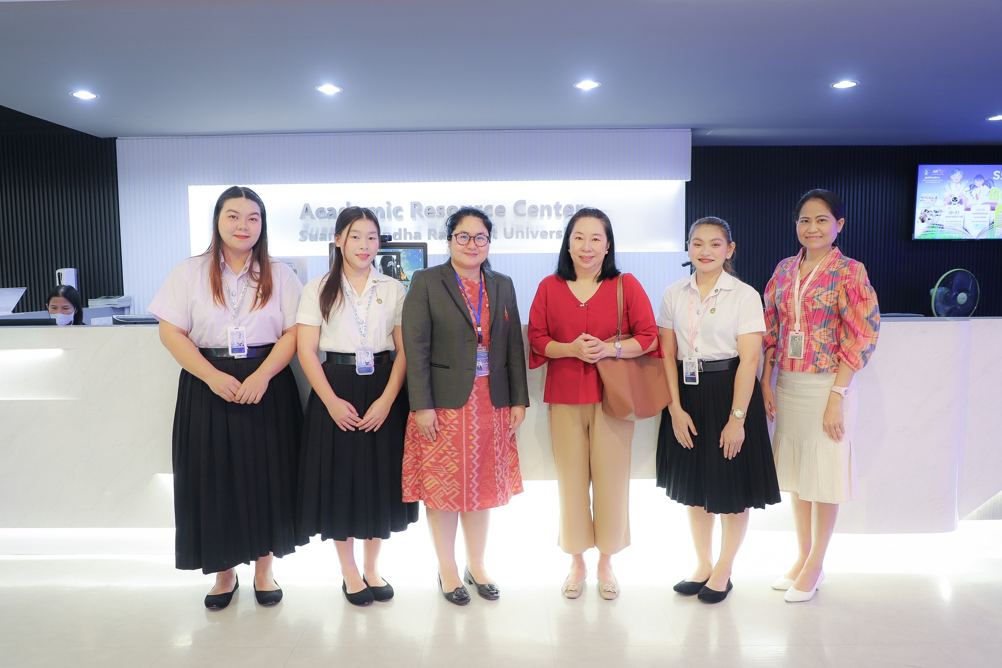 February 7, 2025. The Academic Resource Center, Office of Academic Resources and Information Technology, by Lecturer Benya Whangmahaporn, Deputy Director of the Academic Resource Center, welcomed Assistant Professor Walailuck Amornsiriphong, Lecturer in the Department of Library and Information Science, Faculty of Humanities and Social Sciences, Nakhon Pathom Rajabhat University who has come to monitor and follow up on the training of Miss Kantaporn Sukkasem, Miss Narinthorn Muicharoen, and Miss Wannapa Kongsuea. The supervisor examined about performance of the 3 students from the Department of Library and Information Science, Faculty of Humanities and Social Sciences, Nakhon Pathom Rajabhat University, and made a comments at the Academic Resource Center.