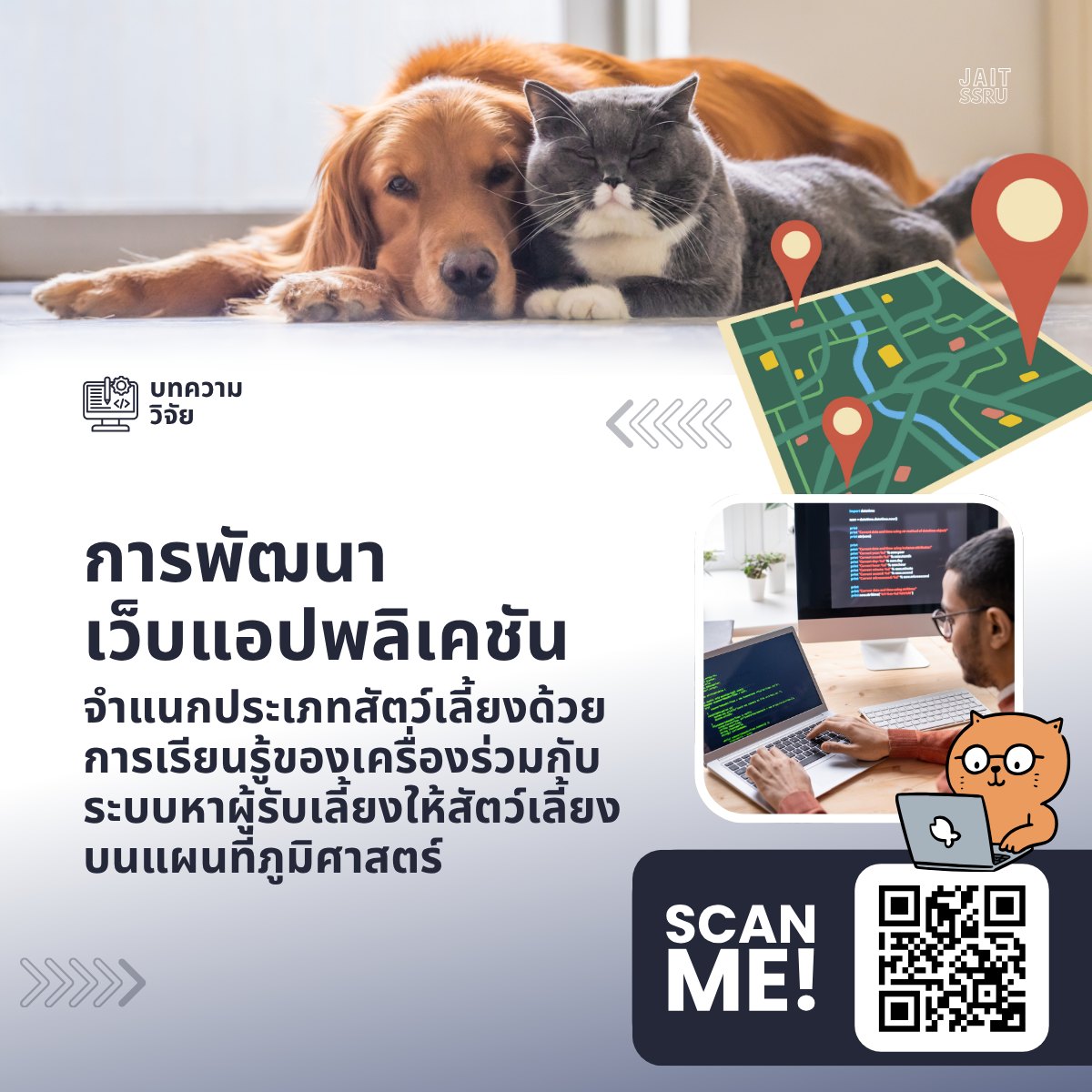 การพัฒนาเว็บแอปพลิเคชันจำแนกประเภทสัตว์เลี้ยงด้วยการเรียนรู้ของเครื่องร่วมกับระบบหาผู้รับเลี้ยงให้สัตว์เลี้ยงบนแผนที่ภูมิศาสตร์