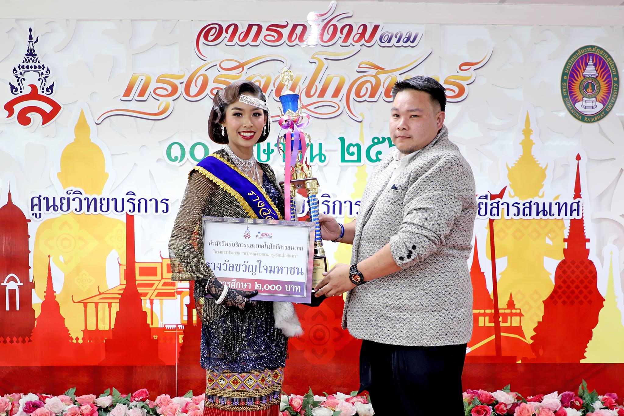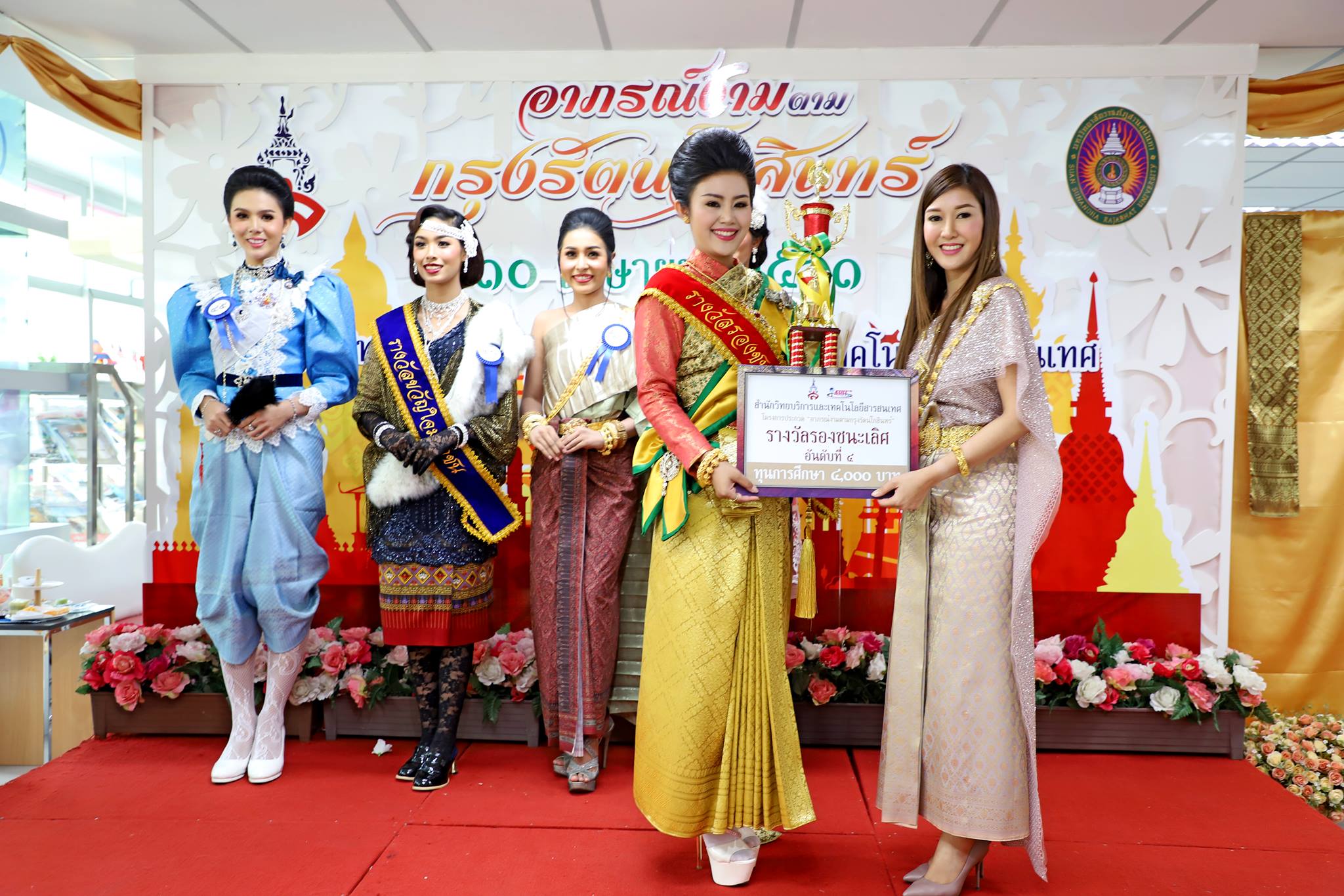 เมื่อวันที่ 10 เมษายน 2561 ศูนย์วิทยบริการ สำนักวิทยบริการและเทคโนโลยีสารสนเทศ ได้จัดโครงการประกวดอาภรณ์งามตามกรุงรัตนโกสินทร์ ได้รับเกียรติจากท่านรองศาสตราจารย์ ดร. ปรุงศักดิ์ อัตพุฒ รองอธิการบดีฝ่ายบริหาร เป็นประธานในพิธีเปิดโครงการ โดยมี อาจารย์ ดร. กัญญ์รัชกาย์ นิลวรรณ รองผู้อำนวยการศูนย์วิทยบริการ กล่าวรายงาน วัตถุประสงค์ของการจัดโครงการนี้ เพื่อศึกษาศิลปวัฒนธรรมการแต่งกายสมัยกรุงรัตนโกสินทร์รวมทั้งสนับสนุนแผนอัตลักษณ์ และเอกลักษณ์ของมหาวิทยาลัยฯ คือ “เน้นความเป็นวัง ปลูกฝังองค์ความรู้ ยึดมั่นคุณธรรมให้เชิดชู เป็นองค์กรแห่งการเรียนรู้สู่สากล ” โดยให้นักศึกษา คณาจารย์ เจ้าหน้าที่ และบุคคลทั่วไป ได้ศึกษา อนุรักษ์ สืบทอดศิลปวัฒนธรรมการแต่งกายสมัยกรุงรัตนโกสินทร์ จัดให้มีการประกวดแต่งกายในสมัยกรุงรัตนโกสินทร์ ที่สะท้อนภาพลักษณ์ความเป็น วังสวนสุนันทาของมหาวิทยาลัยฯ รวมทั้งมีการมอบรางวัลให้กับหน่วยงานที่ส่งเสริมเอกลักษณ์ดีเด่น ได้แก่ คณะศิลปกรรมศาสตร์ และบุคลากรที่แต่งกายงามอย่างไทย ประเภทสายวิชาการ ได้แก่ อาจารย์นวภรณ์ ศรีสราญกุลวงศ์ อาจารย์ประจำสาขาวิชาออกแบบนิเทศศิลป์ คณะศิลปกรรมศาสตร์ สายสนับสนุนวิชาการได้แก่ นางพรพิศ ประดิษฐพงษ์ ผู้อำนวยการกองพัฒนานักศึกษา พิจารณาจากการมีส่วนร่วมในกิจกรรมโครงการของสำนักวิทยบริการและเทคโนโลยีสารสนเทศและการอนุรักษ์แต่งกายงามด้วยผ้าไทยอย่างสม่ำเสมอ และนักศึกษาที่ได้รับรางวัล โครงการประกวดอาภรณ์งามตามกรุงรัตนโกสินทร์ นักศึกษาที่ได้รับรางวัล ดังนี้