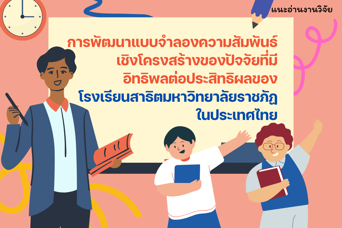 ชื่องานวิจัย: การพัฒนาแบบจำลองความสัมพันธ์เชิงโครงสร้างของปัจจัยที่มีอิทธิพลต่อประสิทธิผลของโรงเรียนสาธิตมหาวิทยาลัยราชภัฏในประเทศไทย