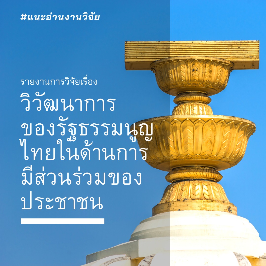 ชื่องานวิจัย: รายงานการวิจัยเรื่องวิวัฒนาการของรัฐธรรมนูญไทยในด้านการมีส่วนร่วมของประชาชน