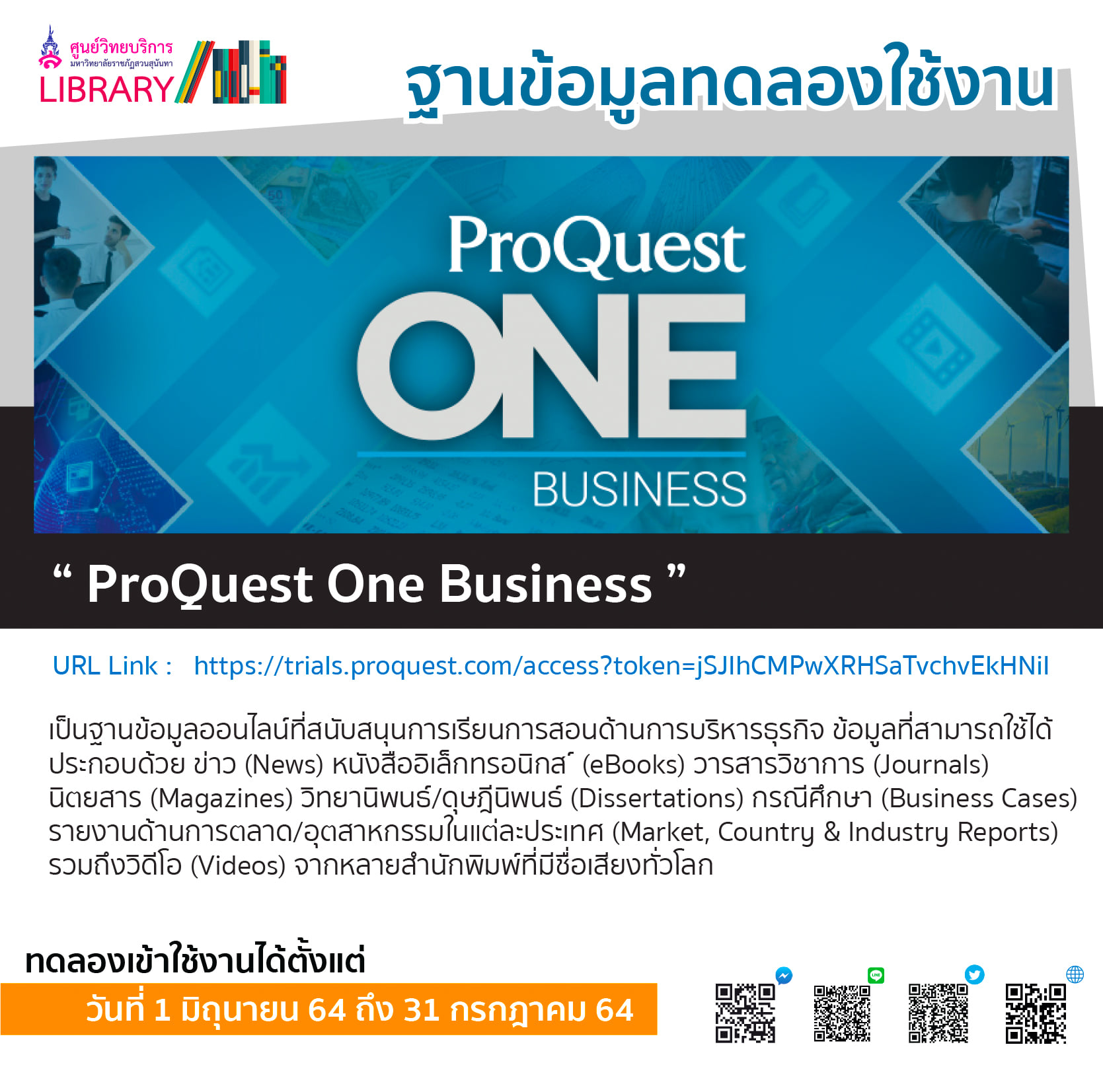 ฐานข้อมูลทดลองใช้งาน “ ProQuest One Business ”