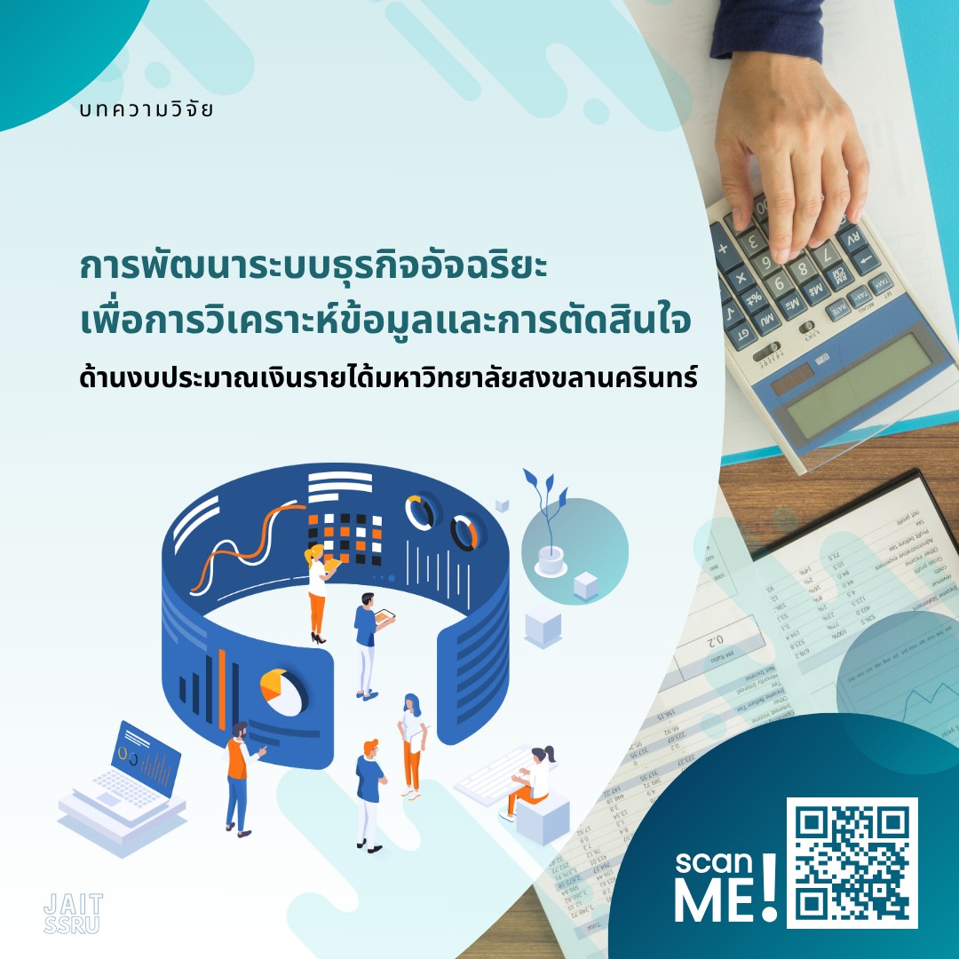 มหาวิทยาลัยสงขลานครินทร์มีระบบบัญชีและการเงินเพื่อการบริหารจัดการ (PSU MAS) สำหรับจัดการข้อมูลงบประมาณเงินรายได้ แต่ยังขาดรายงานที่มีประสิทธิภาพสำหรับการวิเคราะห์และตัดสินใจของผู้บริหาร การวิจัยนี้จึงมีวัตถุประสงค์เพื่อพัฒนาระบบธุรกิจอัจฉริยะโดยใช้ Microsoft Power BI ร่วมกับแนวคิดคุณภาพการให้บริการ (SERVQUAL) เพื่อวิเคราะห์ข้อมูลและสนับสนุนการตัดสินใจด้านงบประมาณเงินรายได้ให้เป็นไปอย่างมีประสิทธิภาพ โดย Power BI จะช่วยในการรวบรวม ประมวลผล และนำเสนอข้อมูลในรูปแบบที่เข้าใจง่าย ขณะที่ SERVQUAL ช่วยให้การพัฒนาระบบตอบสนองความต้องการของผู้ใช้งานในด้านต่าง ๆ ระบบใหม่นี้ช่วยให้ผู้บริหารและผู้ปฏิบัติงานสามารถประมวลผลข้อมูลเชิงวิเคราะห์แบบออนไลน์ในหลายมิติ ผ่านการแสดงผลในรูปแบบตารางและกราฟที่สามารถโต้ตอบและเจาะลึกข้อมูลได้ ผลการประเมินความพึงพอใจจากผู้บริหาร 10 คน และผู้ปฏิบัติงานที่เกี่ยวข้อง 20 คน มีค่าเฉลี่ยภาพรวมอยู่ที่ 4.27 และค่าเบี่ยงเบนมาตรฐานเท่ากับ 0.66 ซึ่งอยู่ในเกณฑ์พึงพอใจมากที่สุด ซึ่งสะท้อนถึงประสิทธิภาพและประโยชน์ของระบบธุรกิจอัจฉริยะที่พัฒนาขึ้นในการเพิ่มประสิทธิภาพการบริหารจัดการงบประมาณเงินรายได้ของมหาวิทยาลัย