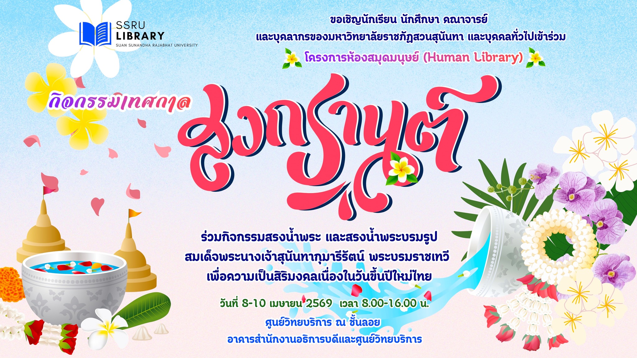• วันที่ 8-10 เมษายน 2569 เวลา 8.00-16.00 น. ณ ชั้นลอย อาคารสำนักงานอธิการบดีและศูนย์วิทยบริการ