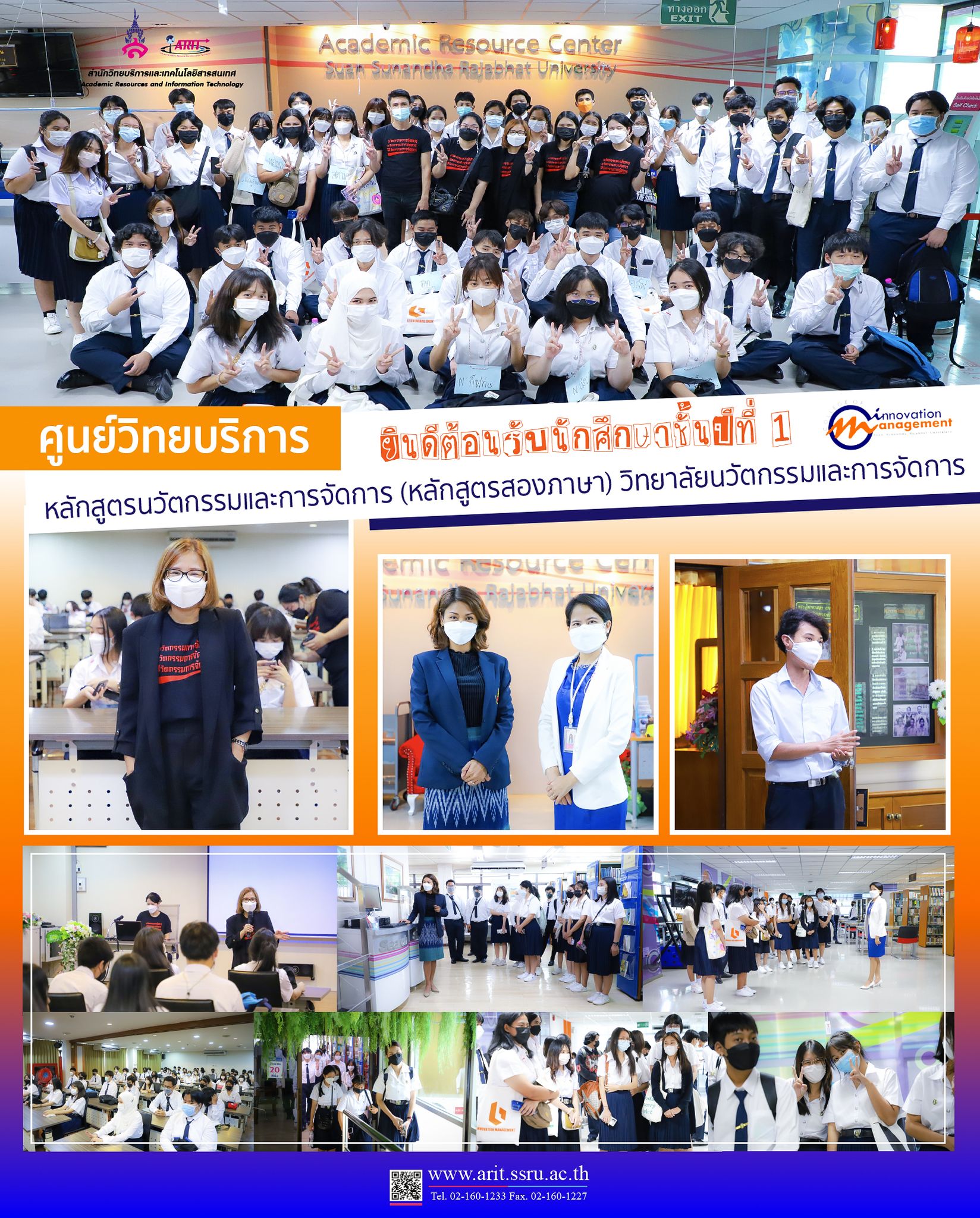 วันที่ 7 กรกฎาคม 2565 ศูนย์วิทยบริการ ต้อนรับนักศึกษาชั้นปีที่ 1 หลักสูตรนวัตกรรมและการจัดการ (หลักสูตรสองภาษา) วิทยาลัยนวัตกรรมและการจัดการ นำโดย อาจารย์ ดร.พิมพ์พลอย ธีรสถิตย์ธรรม รองผู้อำนวยการศูนย์วิทยบริการ และบุคลากรของศูนย์วิทยบริการ ให้การต้อนรับและนำชมสถานที่ พร้อมทั้งให้คำแนะนำในการใช้บริการของทางศูนย์วิทยบริการ ซึ่งคณะนักศึกษาให้ความสนใจเป็นอย่างยิ่ง